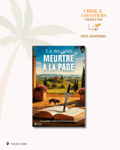 📍Les enquêtes à l’italienne d’Armstrong & Oscar (tome 1) : Meurtre à la page, écrit par T.A Williams. Dan Armstrong, inspecteur à la retraite, pensait profiter d’un séjour en Toscane pour souffler… Mais il va devoir reprendre du service, avec Oscar, son fidèle labrador, pour dénouer un meurtre.